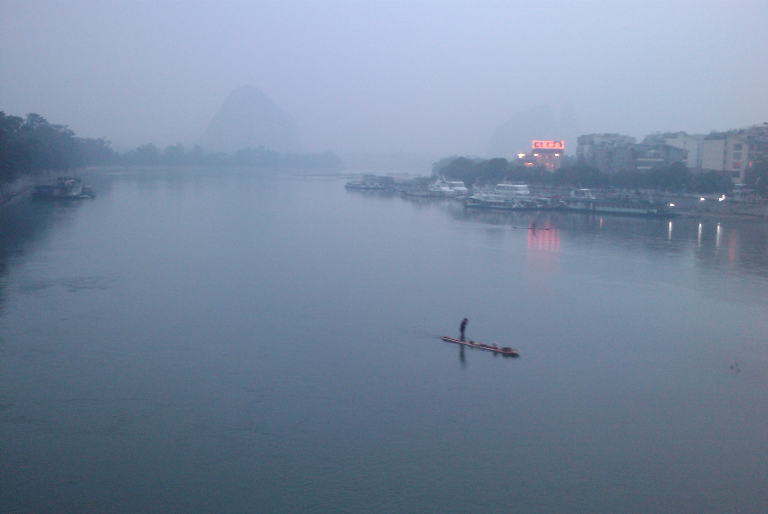 这几天桂林天天下雨,要不然是就雾,在漓江桥上看看这江...