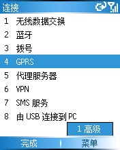 4)再到GPRS选项,不要按确定进入,点菜单》高级》按图填设置》按完成